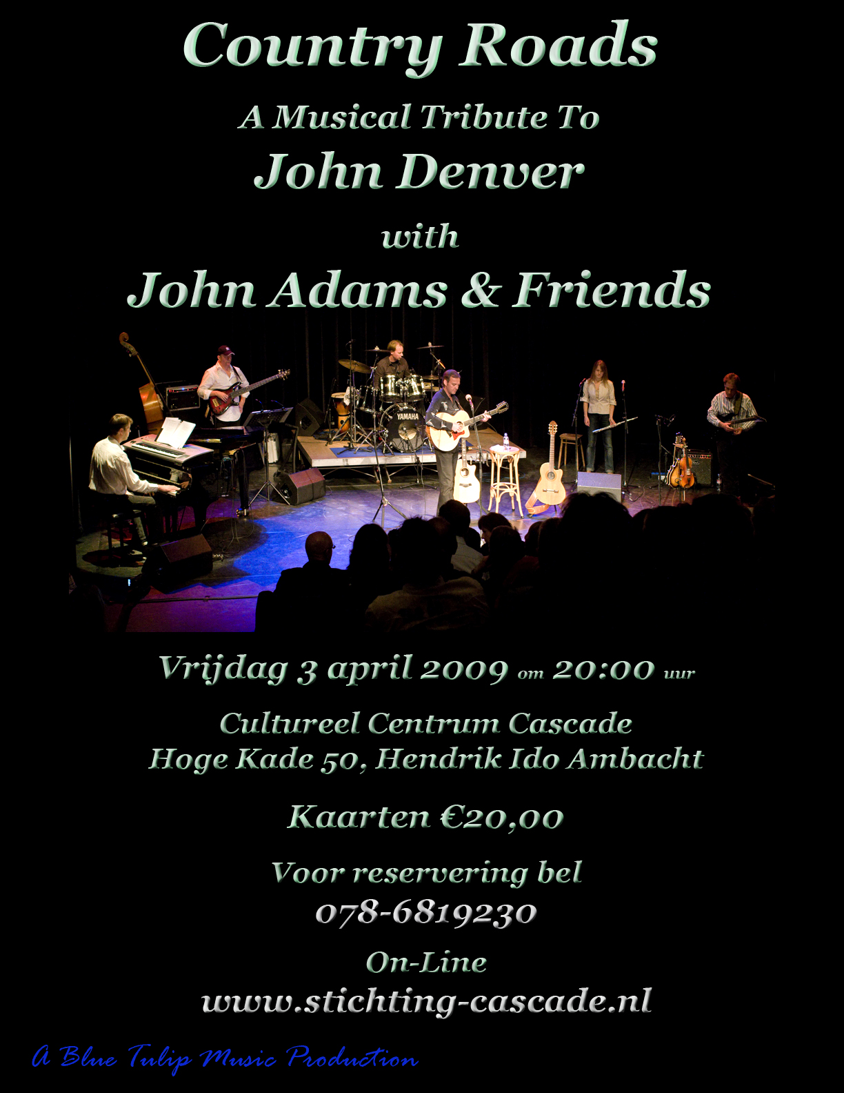 Leon van der Meer; in Voorst, Geesteren, Epe and Woudenberg; see website for more info Rene Wingelaar at Van der Valk Leon van der Meer De Nieuwe Aanleg; Aanvang 20:00; entree E. 10,00; met Colonel Hammond´s Four Rene Wingelaar Rene Wingelaar Rene Wingelaar Rene Wingelaar Rene Wingelaar and full band WOJD Leon van der Meer Intratuin; Aanvang 18:30 Feet on the ground Rene Wingelaar, Thomas Manetti and Magic Freddi Leon van der Meer Cultureel café met spreker Bram Bakker; entree E. 10,00, aanvang 19:30 John Denver is artist of the week Feet on the ground Rene Wingelaar Feet on the ground Rene Wingelaar Rene Wingelaar Leon van der Meer (Restaurant Den Volle Buick, 18:00-21:00) Rene Wingelaar Sjoerd van den Berg John Denver Michiel ten Brug Leon van der Meer WOJD Michiel ten Brug Leon van der Meer John Adams and band John Adams and band Announcement John Adams and band Announcement John Adams Twee Hondjes play Waarom vloog je van ons heen Story by Marie-Christine Twee Hondjes play Waarom vloog je van ons heen John Denver |